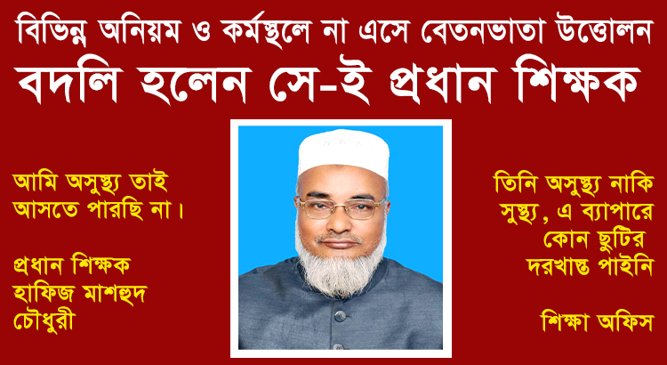 বিদ্যালয়ে না এসে বেতনভাতা উত্তোলন, অন্য শিক্ষকদের বিভিন্ন অজুহাতে কোনঠাসা ও সরকারি বিভিন্ন উর্ধ্বতন কর্মকর্তাদের বিরুদ্ধে বিষোদগার ও স্বেচ্ছাচারিতার অভিযোগে রামগঞ্জ এম ইউ সরকারি উচ্চ বিদ্যালয়ের বিতর্কিত সে-ই প্রধান শিক্ষক হাফিজ মোঃ মাশহুদ চৌধুরীকে বদলি করা হলো লালমনিরহাট জেলার কালিগঞ্জ উপজেলার তুষভান্ডার নছরউদ্দিন সরকারি বালিকা উচ্চ বিদ্যালয়ে।